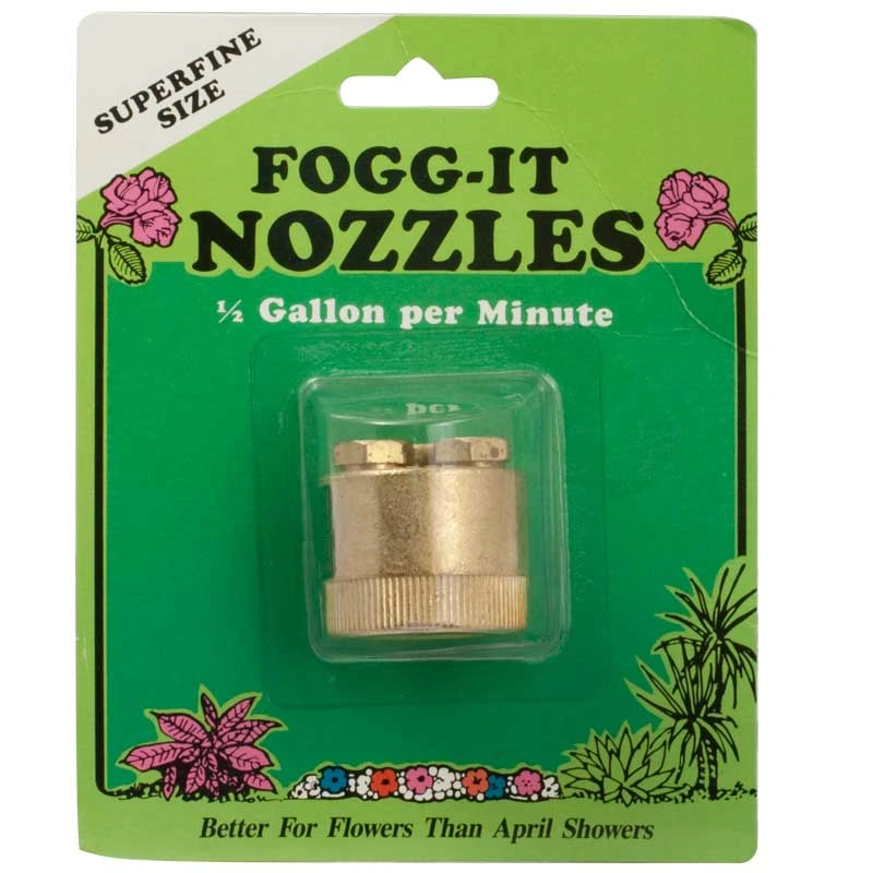 Machined, all-brass nozzle breaks the water into a fine fog which lays a gentle dew on soil and seedlings.