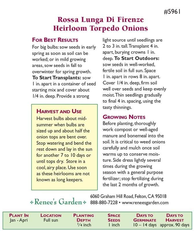 Be the first to review “Renee’s Garden Onion Rossa Lunga Di Firenze (Heirloom)” Cancel reply