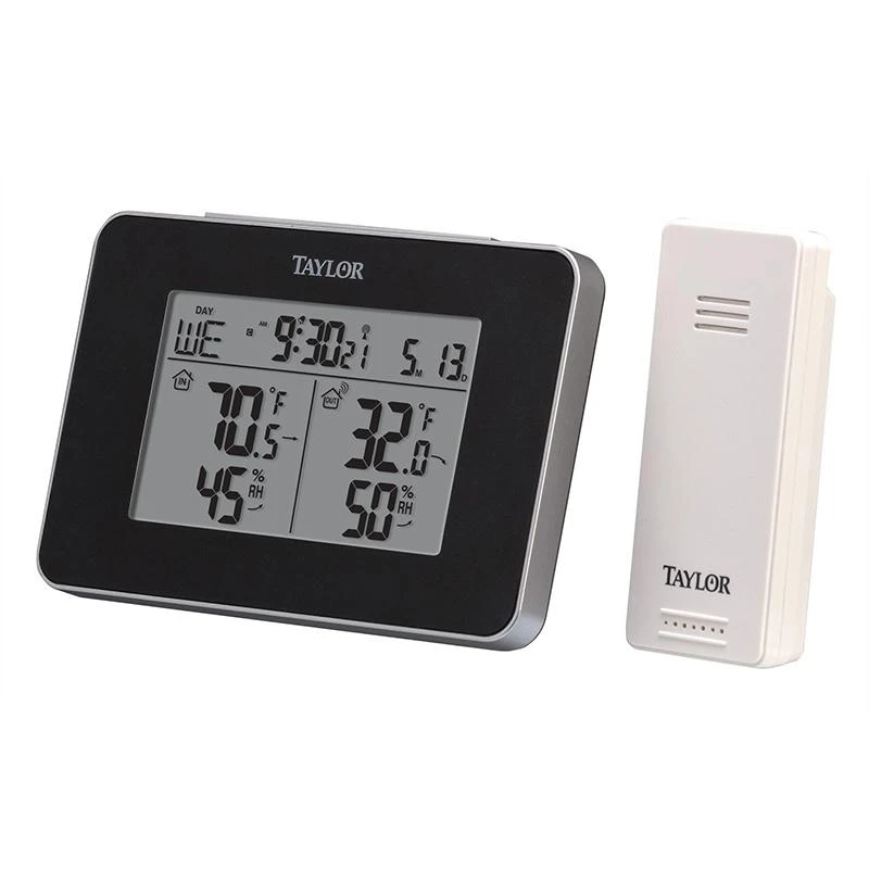 The Taylor Wireless Indoor and Outdoor Weather Station with Hygrometer is the ultimate tool for tracking the climate in and around your house. With temperature and humidity readings and recall, this weather gauge provides all the information needed to keep your environment well-regulated at all times. The wireless remote sensor transmits up to 200 ft. for indoor temperature ranges of 32°F to 122°F or 0°C to 50°C and outdoor ranges of -4°F to 140°F or -20°C to 60°C.